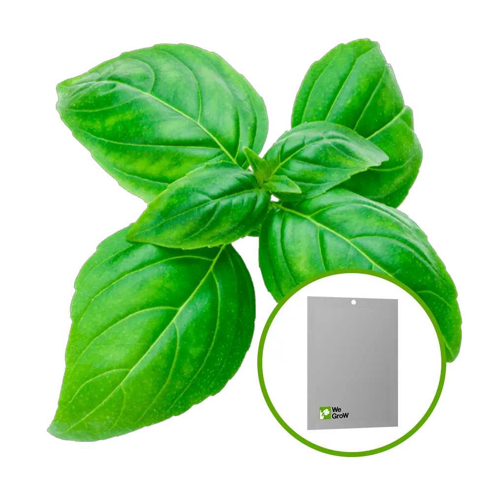Semillas de albahaca variedad Italian Dark Green, ideales para cultivo en macetas, huertos urbanos y sistemas hidropónicos.