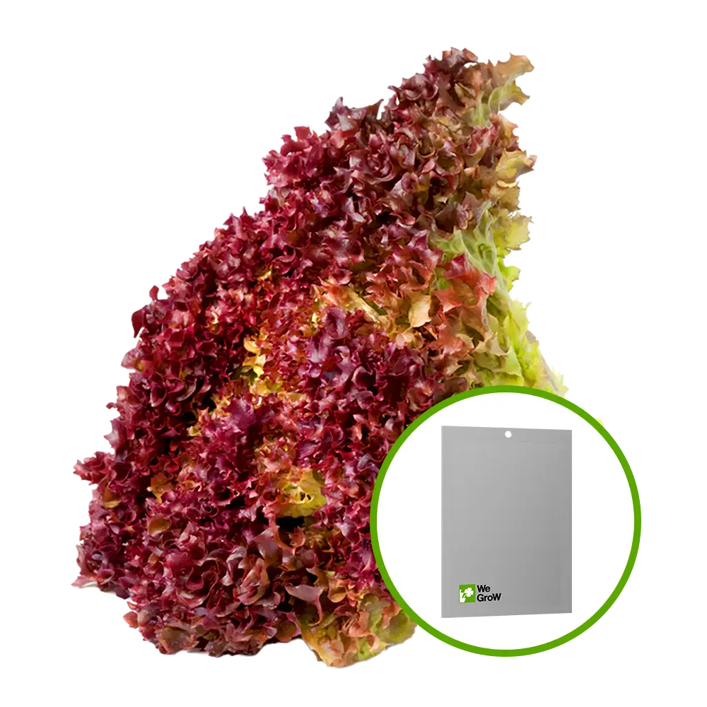 Variedad ornamental y comestible de lechuga morada, ideal para huertos urbanos, macetas y sistemas hidropónicos. Perfecta para hojas crujientes con atractivo color morado que añade valor visual y nutricional a ensaladas y bandejas de cultivo.